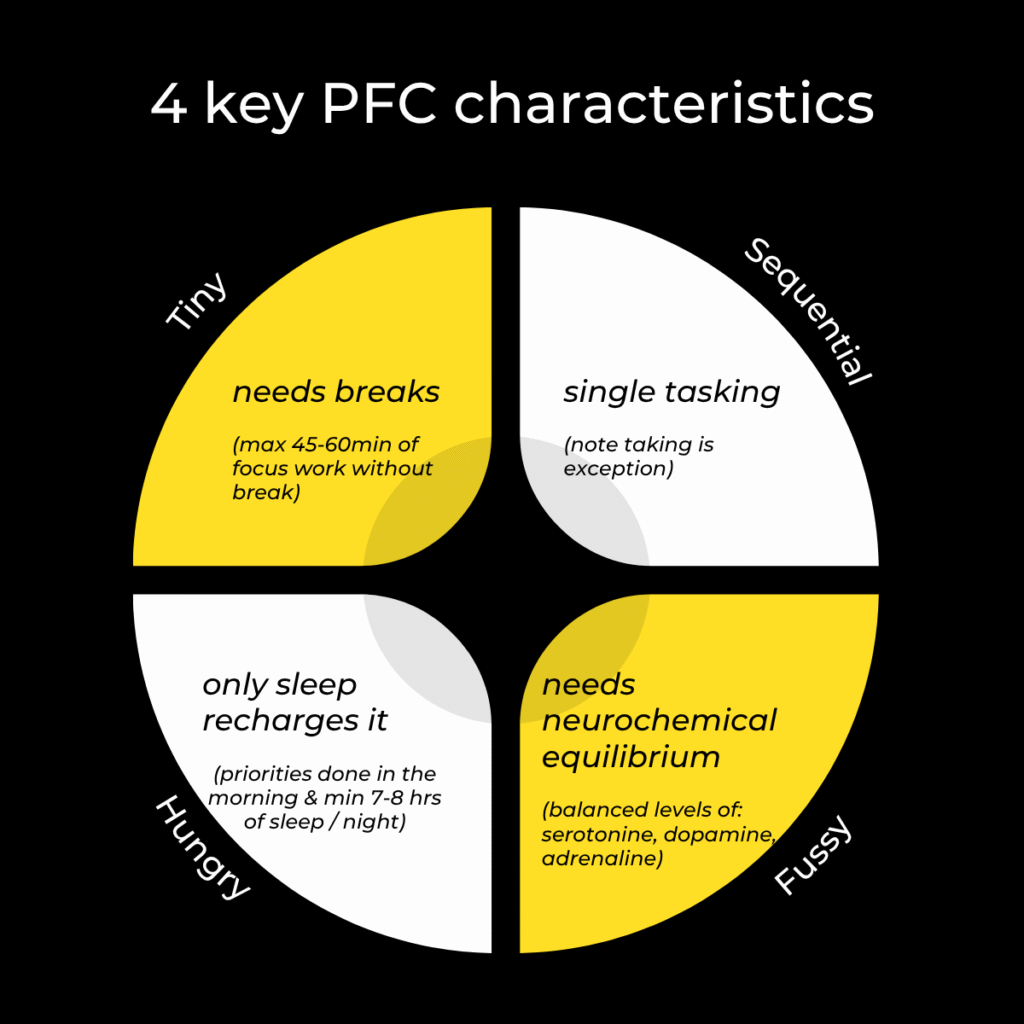 Your PFC is sharpest after sleep—which is why “eat the frog” (doing your hardest task first) actually works.