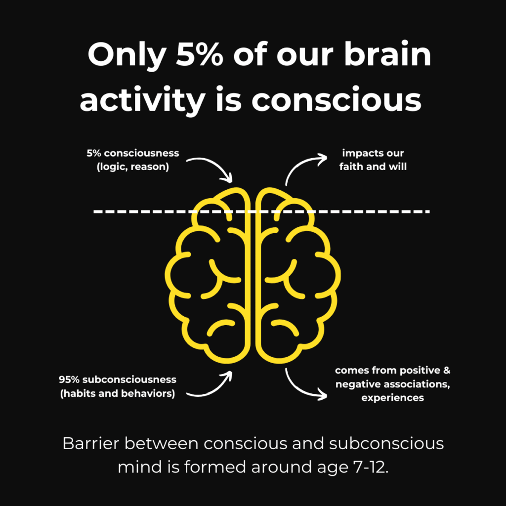 Between 0 and 7 years old, your subconscious mind was wide open—and everything got in. The barrier between conscious and subconscious mind is being formed at the age 7-12.